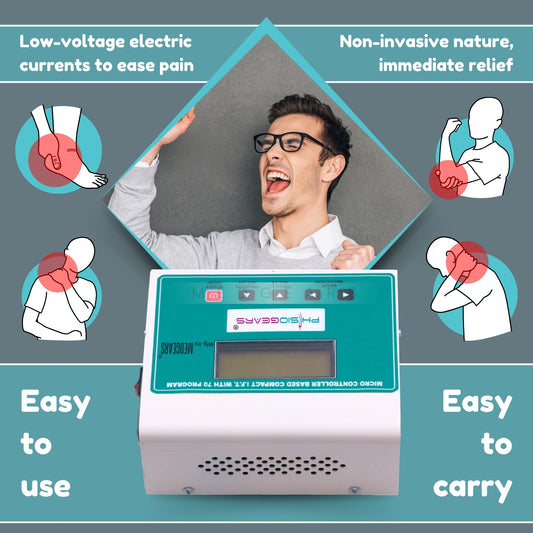 Physiogears Mini IFT 70 for Clinic Hospital Home Use effictive & efficient IFT Machine for Physiotherapy Interferential Therapy with One Year Warranty (Electrode Pad)
