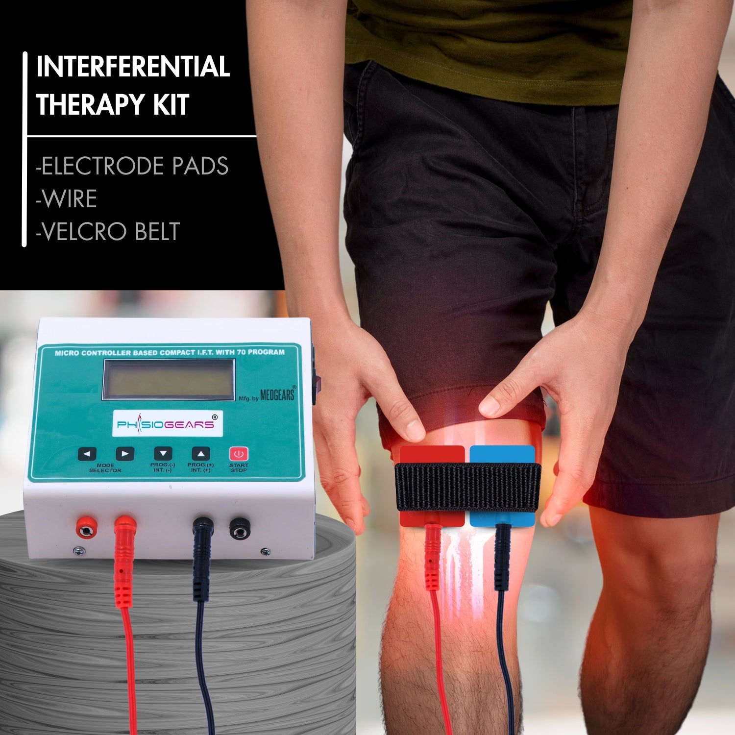 The IFT 4 Pin Kit is a complete accessory set designed for Interferential Therapy (IFT) and other electrotherapy machines. It includes high-quality 4-pin connecting wires, reusable self-adhesive electrode pads, and a strong Velcro strap to secure electrode placement during treatment. Built with medical-grade materials, the kit ensures safe, reliable, and effective therapy sessions, making it ideal for physiotherapy clinics, rehabilitation centers, and home therapy use.