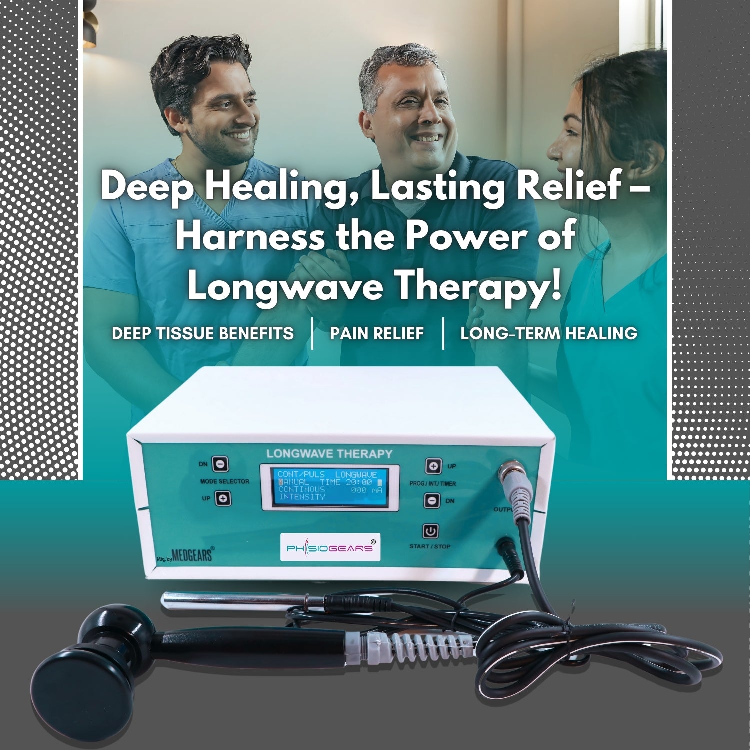 The principle behind this equipment is based on the capacitor field method. It emits electromagnetic energy at specific frequencies ranging from 500 KHz to 10 MHz Thus, this has become an alternative for Shortwave Diathermy Unit.