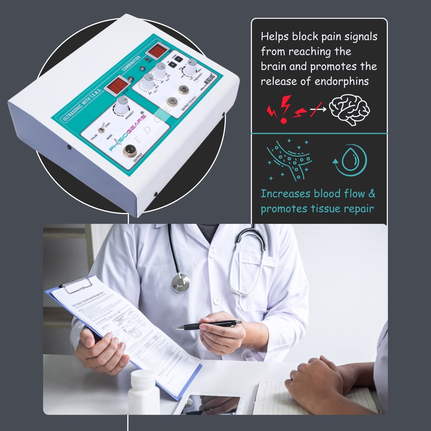 Multiple Treatment Modes: Offers a variety of TENS stimulation modes for nerve pain and customizable ultrasound frequencies for targeted therapy.
